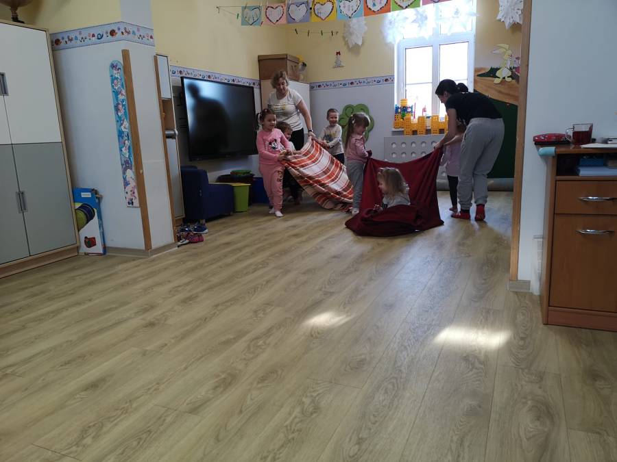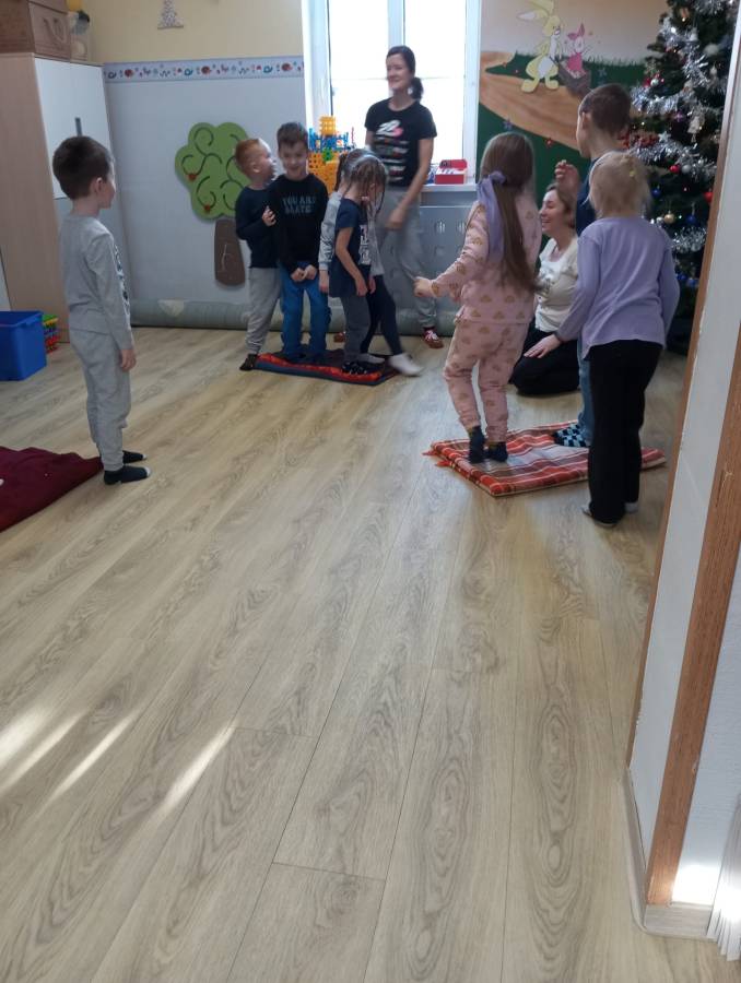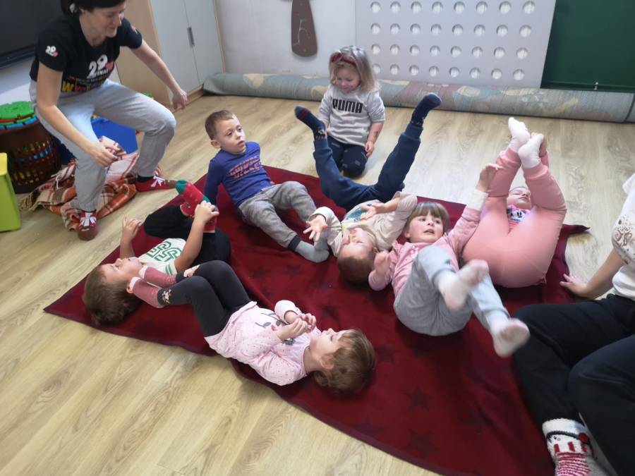 Zajęcie ruchowe z wykorzystaniem metody ruchu rozwijającego V. Sherborne z pracownikami PPP.